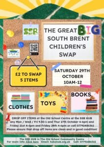 Saturday 29th October 2022: – The Big South Brent Children’s Swap 10am-12noon – A swap event at Sustainable South Brent’s new Sustainability Hub at the Old School Community Centre for children’s books, toys and clothes. Drop off 5 items, pay £2, and then come along on the day and choose 5 new items. Drop off times for the event are Hub opening times (Monday / Wednesday / Friday 9.30am-1pm) and Thursday 27th 4-6pm and Fridays 21st and 28th 4-6pm. (Please ensure that dropped off items are clean and in good condition.)