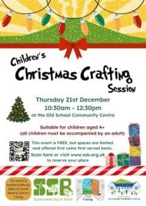 Thursday 21 December 2023: Children’s Christmas Crafting session: from 10.30-12.30 in the Old School Community Centre. Print your own wrapping paper and make Christmas decorations.