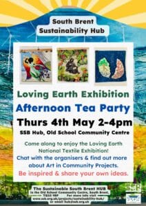 Thursday 4 May 2023: Loving Earth Exhibition – Afternoon Tea Party: 2-4pm in the Sustainability Hub at the Old School Community Centre.